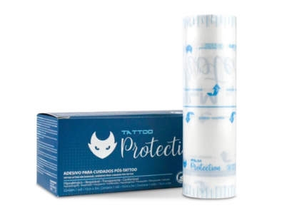 O Tattoo Protection é um adesivo transparente de poliuretano desenvolvido para a fase inicial da cicatrização da tattoo. Com uma película elástica, transparente e maleável, ele se adapta muito bem à pele e ajuda no processo de recuperação. Hipoalergênico e impermeável, o Tattoo Protection cria uma barreira contra agentes externos.